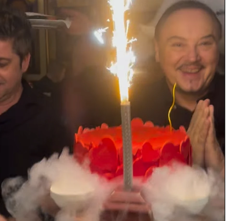 Knez je sa suprugom i prijateljima, među kojima je bio i Sergej Ćetković, proslavio rođendan u jednom restoranu. U jednom trenutku, konobari su doneli veliku crvenu tortu sa vatrometom, a svi su počeli da pevaju rođendansku pesmicu.