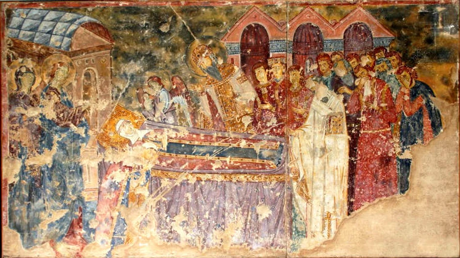 Ona pokazuje na koji način je prva srpska kraljica okončala život - kako se veruje, dušu joj je prihvatio sam anđeo. Naime, na fresci je prikazana kraljica Ana na odru u trenutku kada njenu dušu prihvata anđeo, a na njenom uzglavlju pojavljuju se Hristos i Bogorodica. Oko odra je okupljen srpski dvor. Njen sin i kralj Uroš Ι predstavljen je u vladarskoj odeždi s krunom naglavi, iza njega stoje prinčevi Dragutin i Milutin, a iza njih princeza Brnča, dok levu ruku kraljice drži i ljubi njena snaha kraljica Jelena.