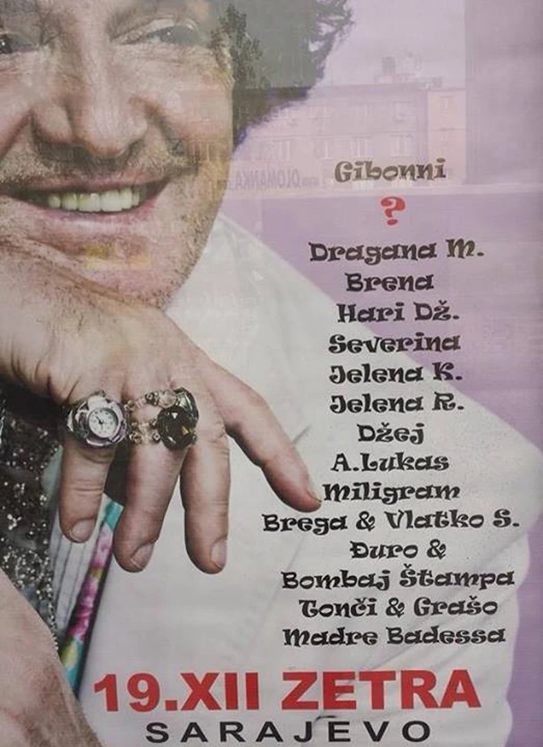 Najavljeno je da će 19. decembra će u Sarajevu biti održan veliki humanitarni koncert proslavljenog Gorana Bregovića koji će u sarajevskoj "Zetri" te večeri ugostiti i neka od najvećih muzičkih imena sa ovih prostora.Međutim da li su organizatori zaboravili imena svojih glavnih zvezda ili nisu sigurni ko će zaista i doći pa su napravili plakate koji ne pomažu javnosti da za ista imena i sazna, bilo kako bilo ovi posteri se šire društvenim mrežama kao epidemija.