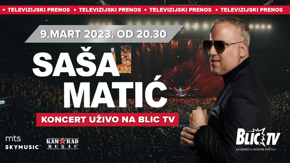 Nakon što je 8. marta ispunio poslednje mesto u največoj dvorani u Srbiji, Saša će to isto učiniti i večeras, a ekskluzivno pravo za televizijski prenos koncerta ima Blic TV.
