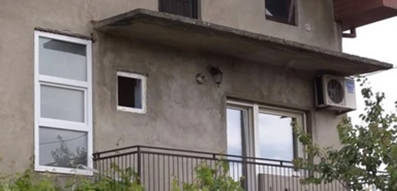 Jasno se može videti da su trenutno radovi na kući, jedan deo je pod fasadom bež boje, dok pola kuće nema fasadu.