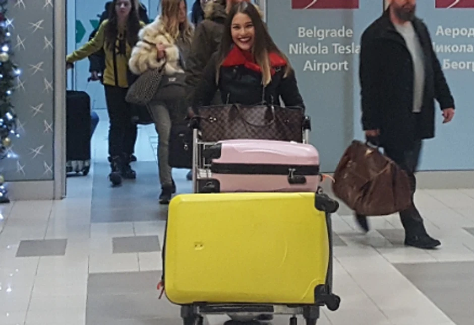 Lepa Dženi je objavila prvo sliku sa aerodroma na kojoj je vidimo nasmejanu kako gura kofere na kolicima, potom je podelila fotografiju kada ju je Uroš zaprosio, a onda i jednu kada je saznala da je trudna.