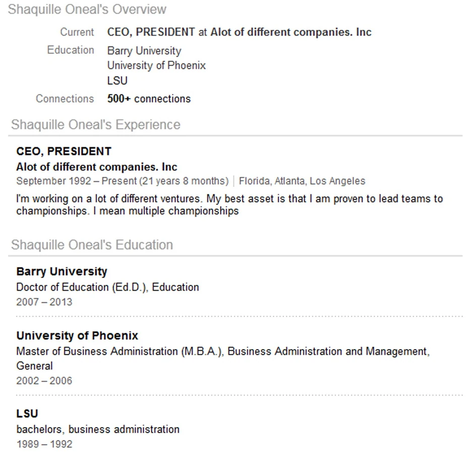 Bivši profesionalni košarkaš, reper i voditelj, Šakil O'Nil, oduševio je one koji su se pridružili njegovom nalogu "Linkdin"-a i pročitali čime se Šakil zapravo sve bavi.