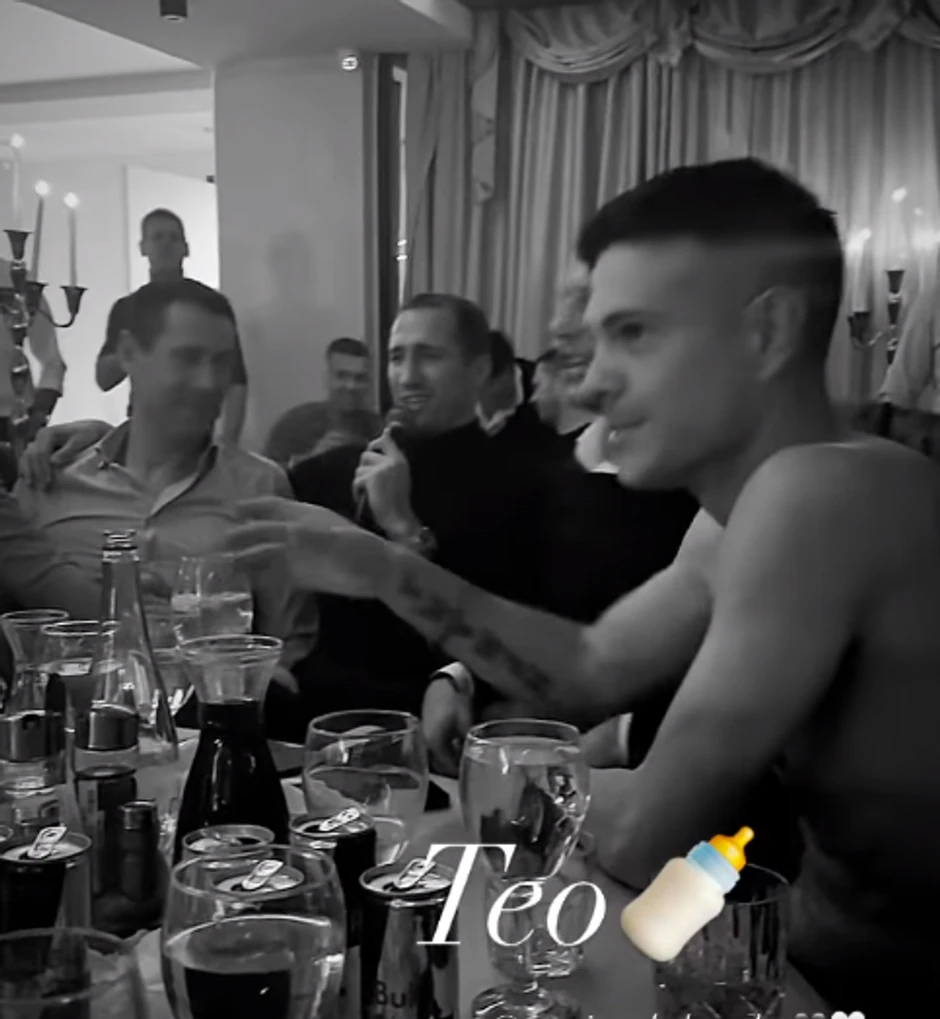 Ponosni tata ovim povodom napravio je gala proslavu na kojoj su bile i njegove kolege fudbaleri, a uz muziku je pevao i veselio se, dok je bio go do pasa, nakon što su mu tradicionalno iscepali majicu.