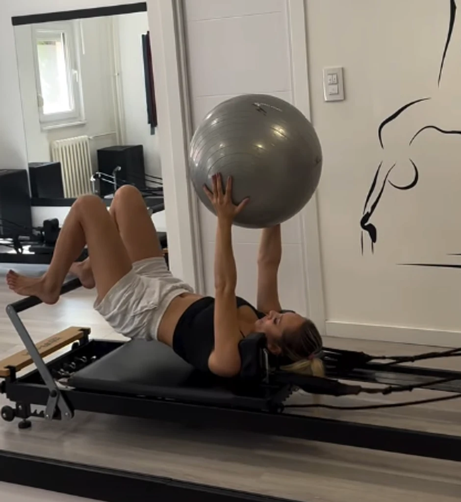 Ljudi su mogli da videle kako je Đoganijeva ovladala tehnikama pilatesa na reformer spravi dok je u rukama držala veliku loptu za trening.