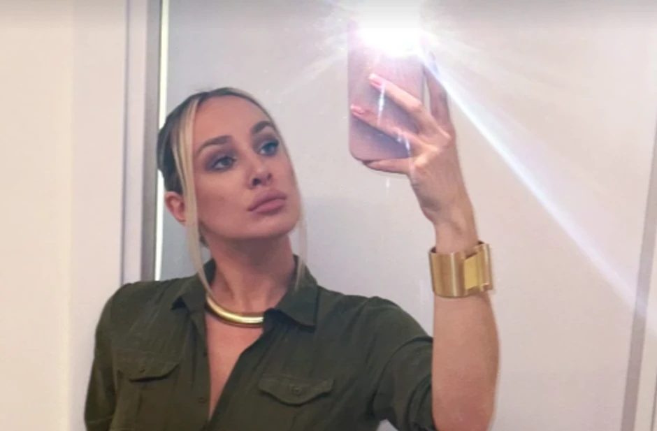 Ona je pozirala u uskom maslinastom kombinezonu sa dubokim dekolteom, na nogama je imala tigraste salonke , a izgled je upotpunila debelom zlatnom ogrlicom i ogromnim narukvicama.