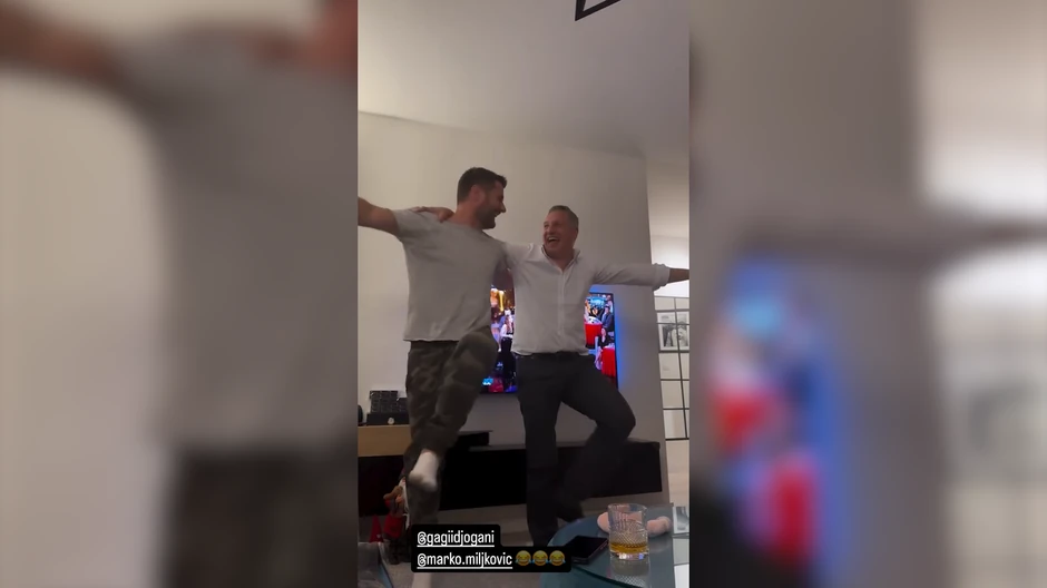 Na stolu se nalazila čaša viskija, a atmosfera je dostigla vrhunac kada su Marko i Gagi počeli da igraju kolo, što je Luna zabeležila i podelila na društvenim mrežama.