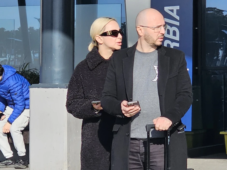 Pevačica Maja Berović posle nastupa u inostranstvu sletela je na aerodrom Nikola Tesla, a ekipa "Blica" uslikala je pevačicu sa suprugom.