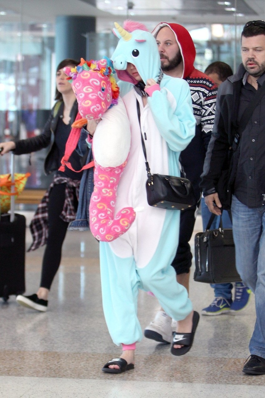 Majli Sajrus očigledno ne mari za to gde će i u kojem izdanju da se pojavi. Ona se tako na aerodromu u Sidneju pojavila u pidžami jednoroga i kućnim papučama.