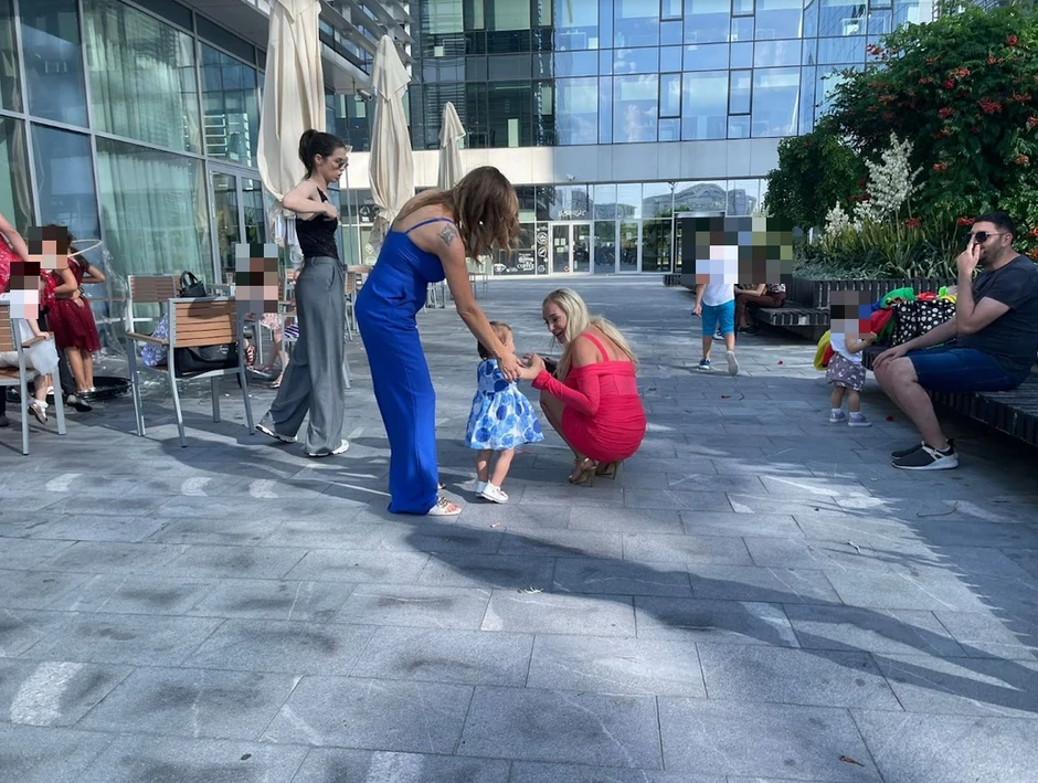 Mala Mia na krštenju je nosila, cvetnu haljinu roze boje, dok se za restoran presvukla u plavu haljinicu na tufne.
