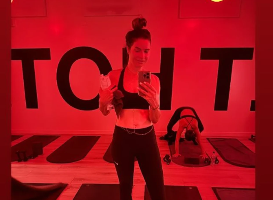 Glumica je na sebi imala crni top i helanke koje su savršeno ocrtale sve njene atribute.