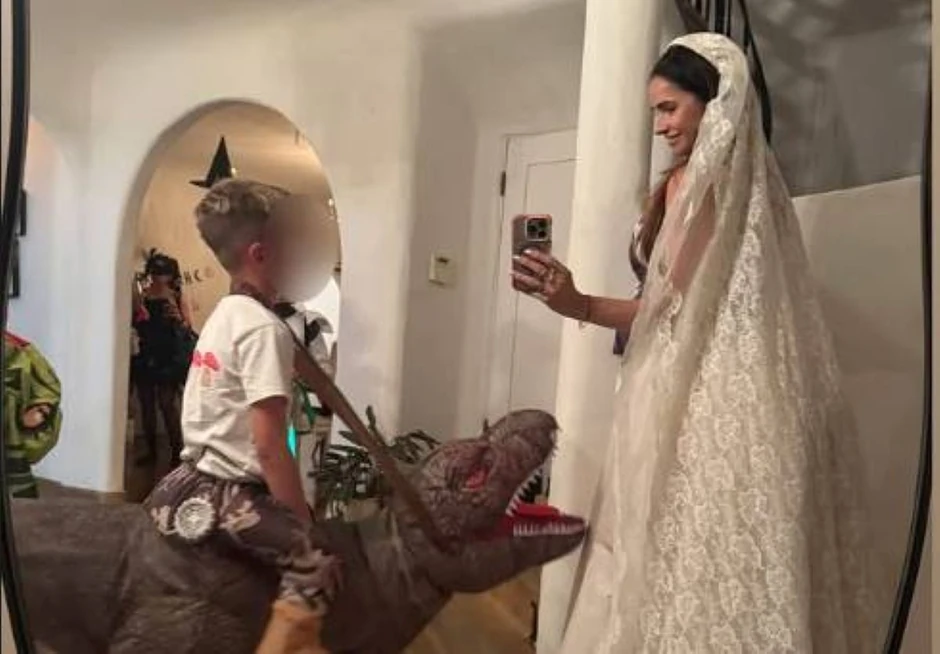 Naime, Marija Karan je odlučila da se maskira u mladu, pa je za ovu priliku obukla dugu venčanicu, a na glavu je stavila ogroman veo ceo od čipke.