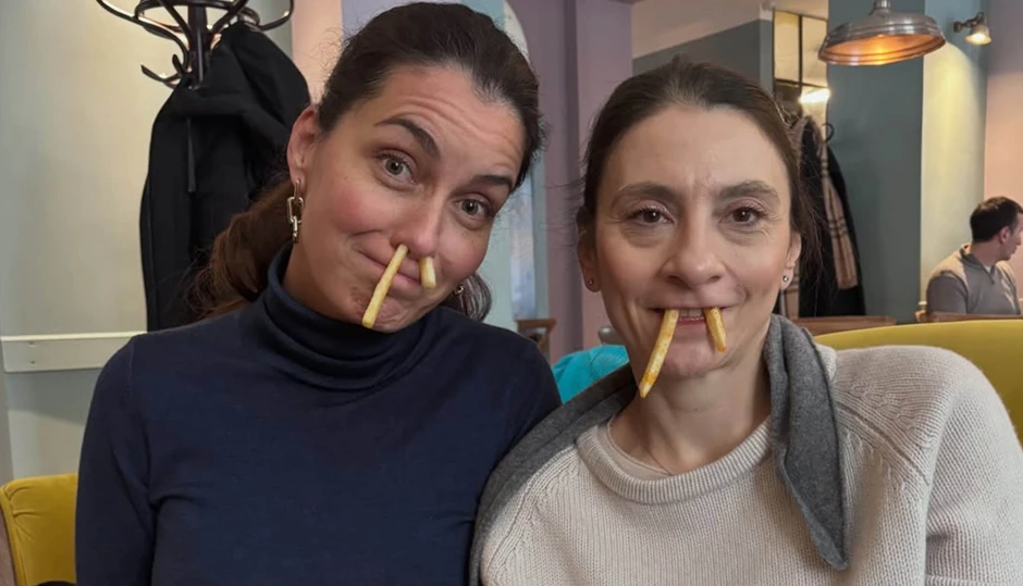 Na meniju se našao pomfrit koji je Marija Kilibarda stavila u nozdrve, dok ih je Anja držala u ustima. Slike su naišle na pozitivne komentare, a voditeljka je kratko napisala: "Volim vas i volim nas. I januar čak volim".