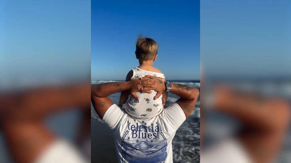 Marija Šerifović stavila je sina Maria na ramenima i tako ga šetala po obali mora. Ovaj snimak je opisala audio snimkom: