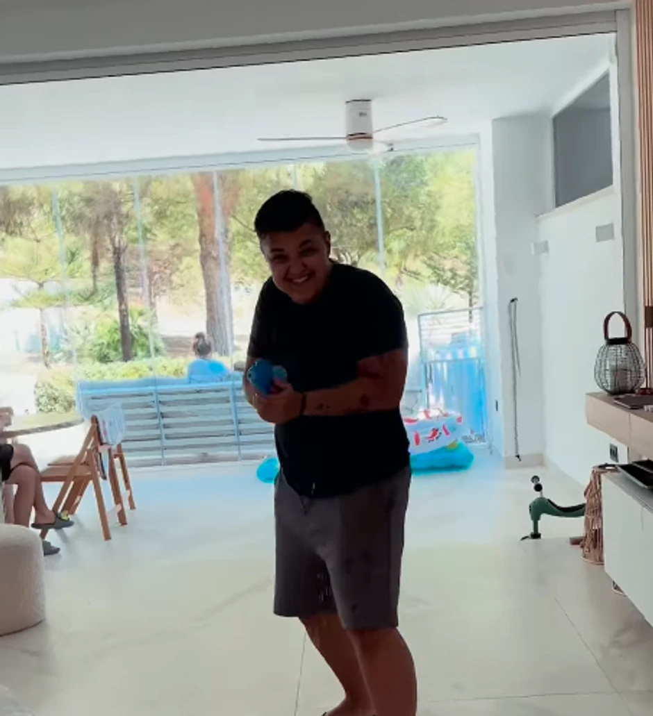 Marija je pokazala kako se igra sa vodenim pištoljem i prska prijatelje, ali usput i skače od sreće. Njen osmeh i gestovi pokazuju da i te kako uživa u zasluženom odmoru.