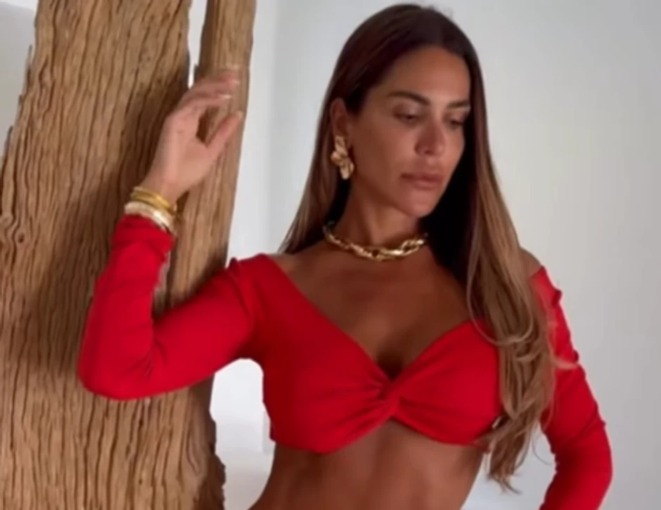 Pevačica (37) je pozirala u ubitačnoj kombinaciji - crvenoj suknji sa velikim šlicem i topu istog dezena, a isklesan stomak je bio u pravom planu kao i duge vitke noge.