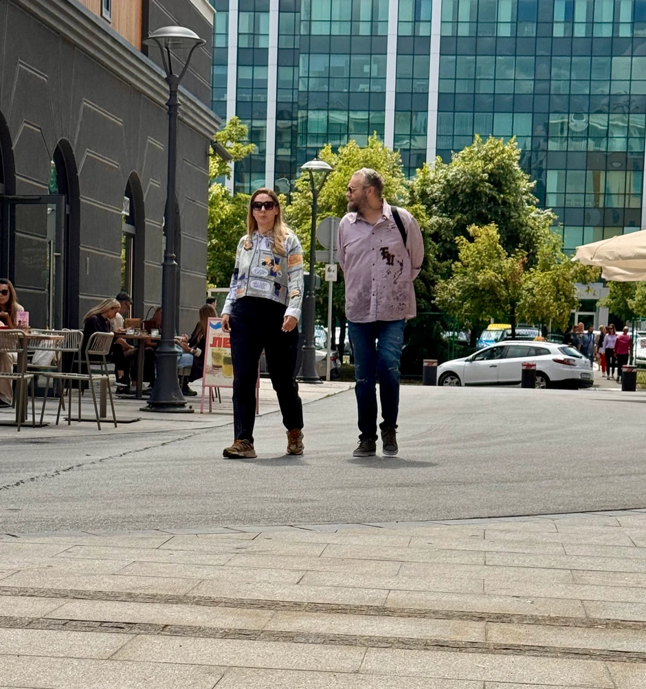 Oboje su bili u kežual izdanjima, a činilo se da i te kako uživaju u lepom, julskom danu u Beogradu.