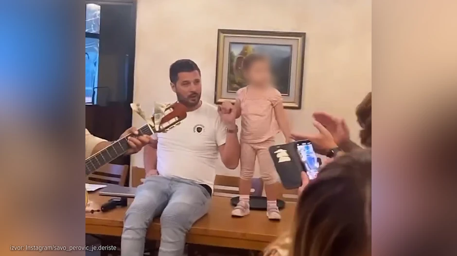 Ponosni otac Marko Miljković je u toku lupovanja sa muzičarima popeo ćerkicu Miju na sto, nakon čega se popeo i on.