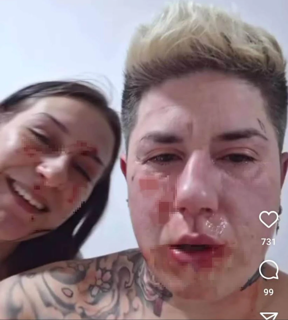 Na jednoj od slika Matora pozira sa ranom na licu, dok se Stefani smeje. Na licu Grujićeve, takođe se vidi krv.