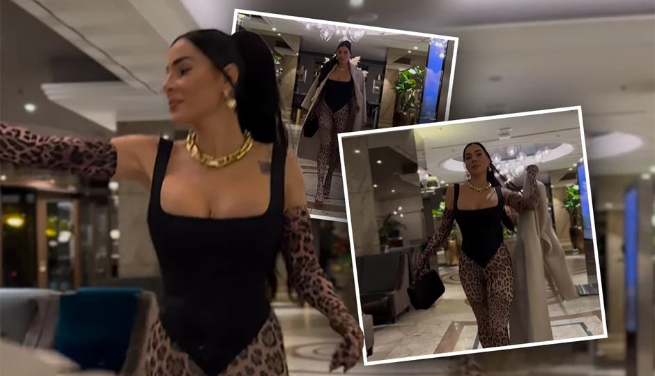 Mia je prošetala u tigrasto crnom kompletu koji je bio pripijen uz telo, te se videla njena izvajana figura.