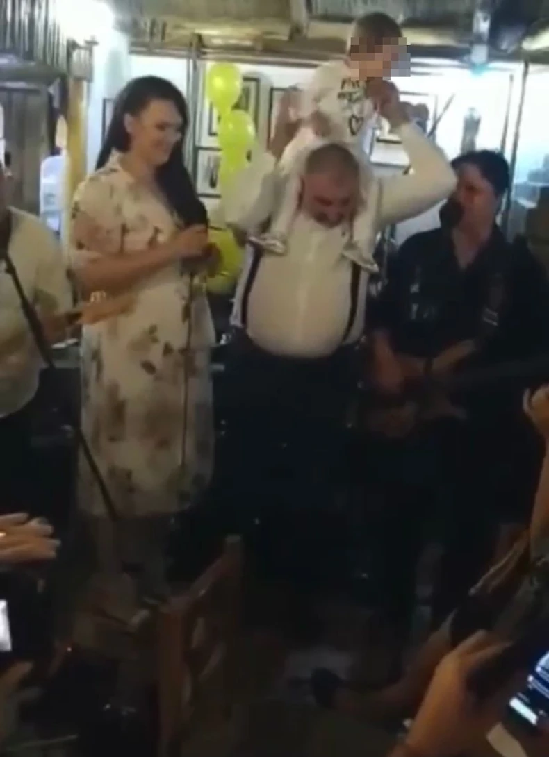 Njima se u jednom trenutku pridružila i ćerkica Dunja, koja je danas krštena, a nosio ju je na ramenima.