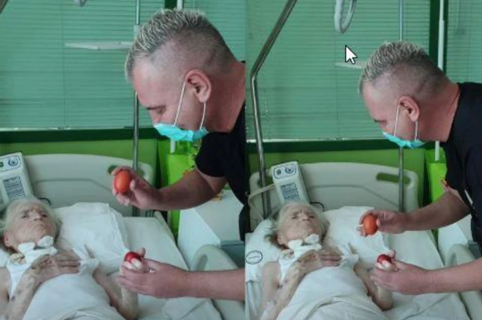 Voditelj Milan Milošević posetio je juče majku Rajku koja se nalazi u bolnici i sa njom se kucao jajima.