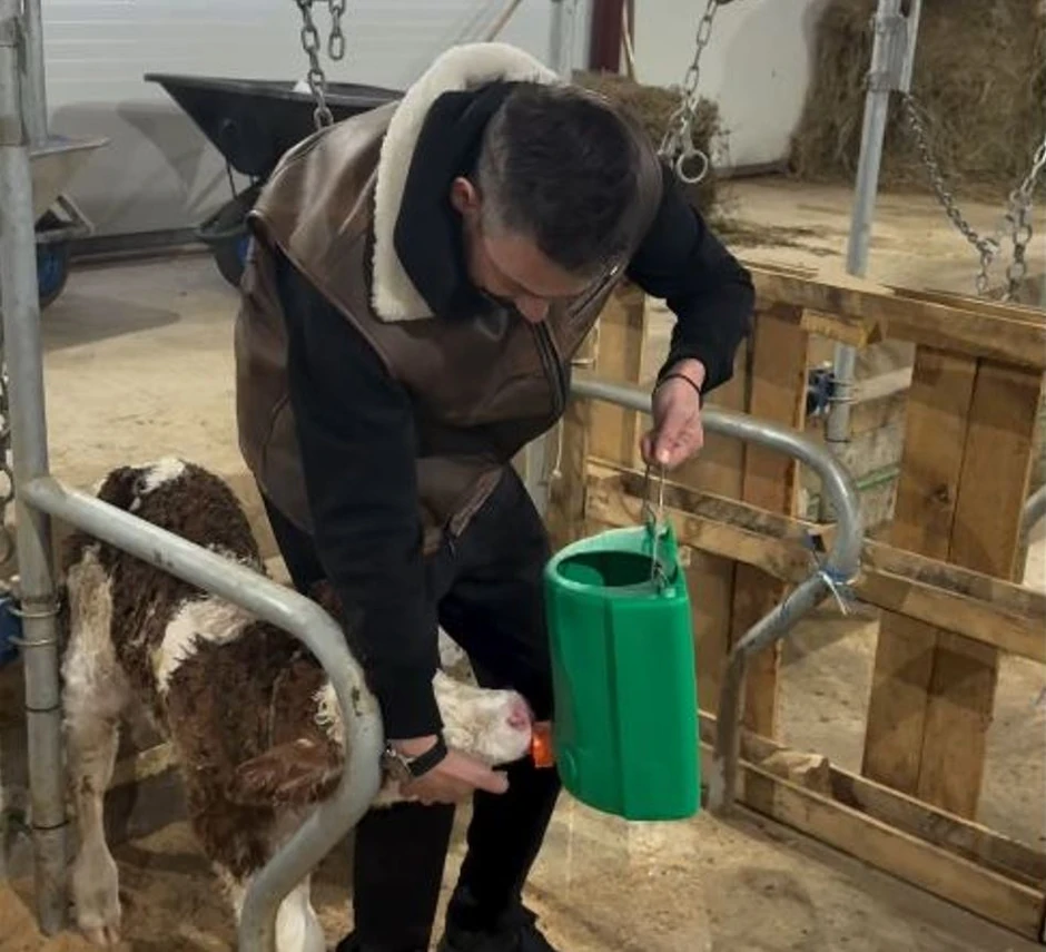 Milan Vasić obilazi Srbiju, a trenutno je u Kraljevu gde je posetio jedno seosko domaćinstvo.On je ušao u štalu i nahranio tek rođeno tele.