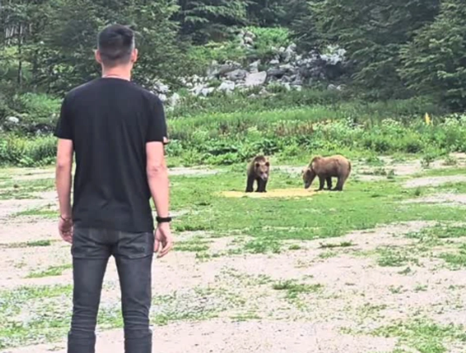 - Zar ovo nije nešto prelepo, na Šar Planini sam pored dva medveda koji se hrane i gledamo ih i uživamo - rekao je Milan Vasić na snimku.