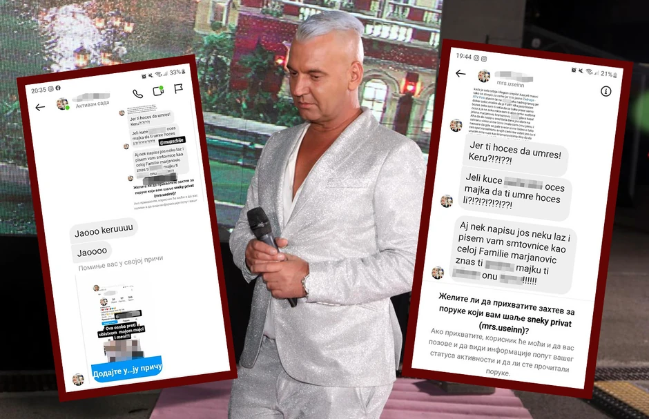 - Je l' ti hoćeš da umreš, keru? Je li kuče p***rsko , hoćeš majka da ti umre hoćeš?! Aj nek napišu još neku laž i pišem vam smrtovnice kao celoj familiji Marjanović, znaš ti p***ru, majku ti j***m onu k***u - glasi samo jedna od njih.