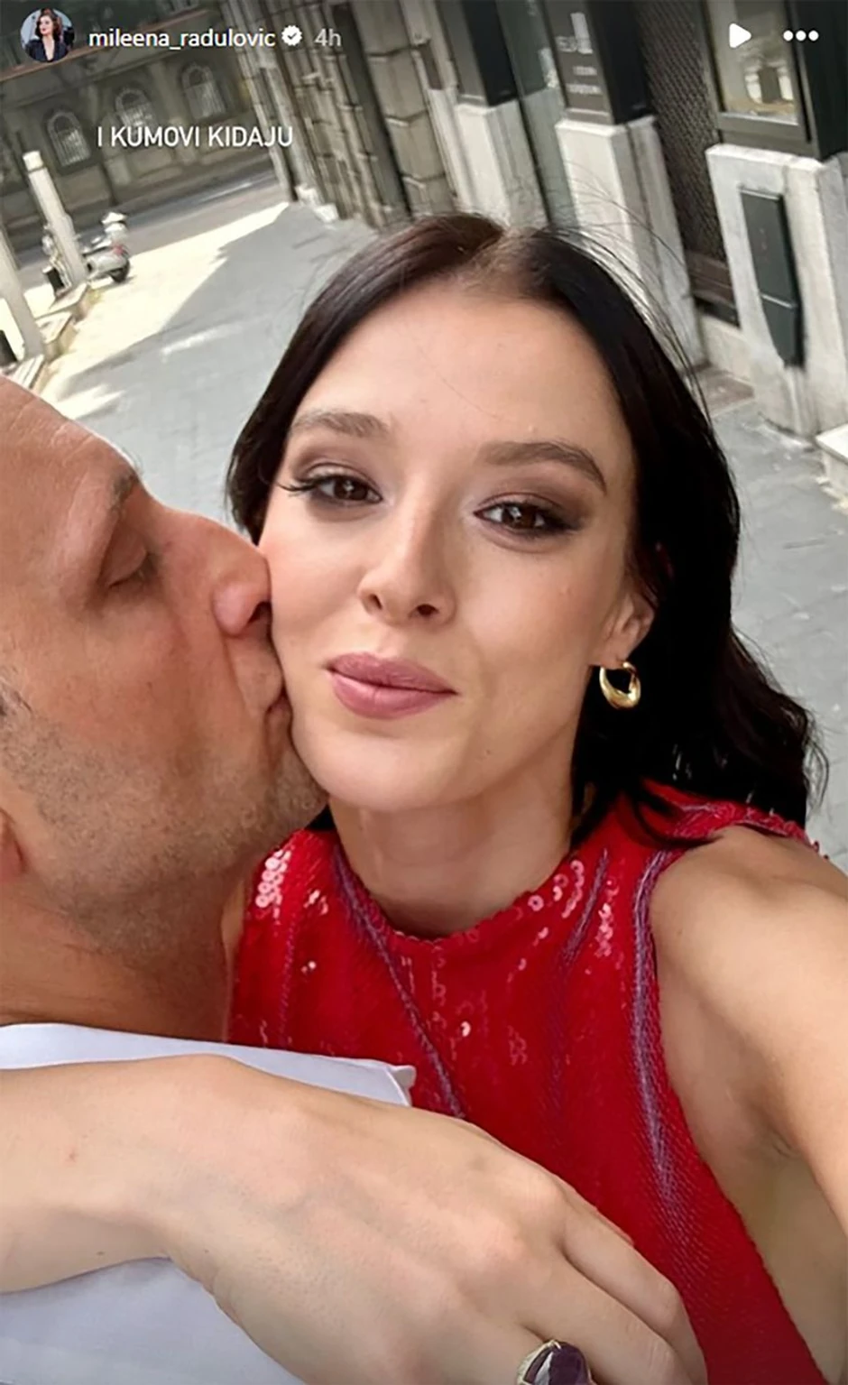 Kuma, poznata glumica Milena Radulović, zasijala je na venčanju u pratnji svog partnera, repera Ognjena Jankovića iz grupe "Beogradski sindikat". Milena je na svom Instagramu podelila video sa događaja uz simpatičan opis: "Stiže kuma." Kasnije je objavila sliku mladenaca i fotografiju sa Ognjenom uz komentar: "I kumovi kidaju."