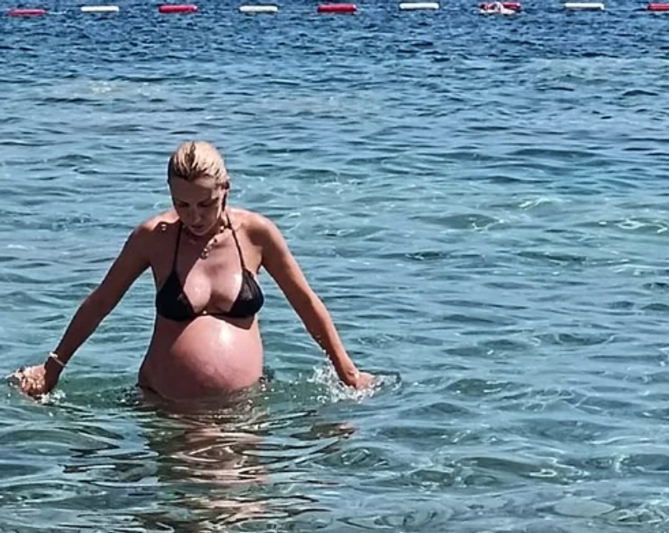 Ona je bila u crnom bikiniju, a u prvi plan je došao njen trudnički stomak.