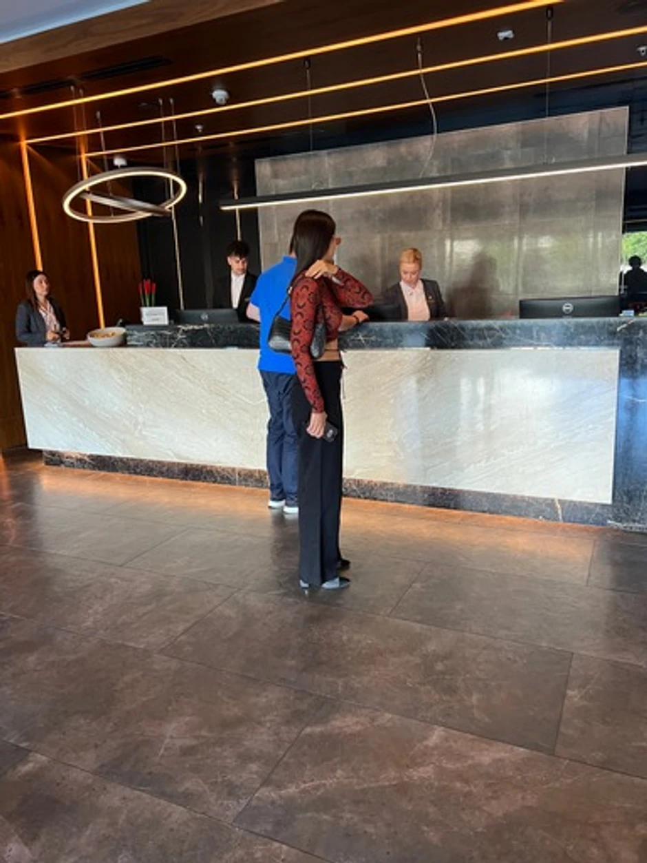 U Novi Sad je stigla dan ranije i prvo se zaputila u luksuzni hotel, gde je smestila veći deo svoje ekipe.