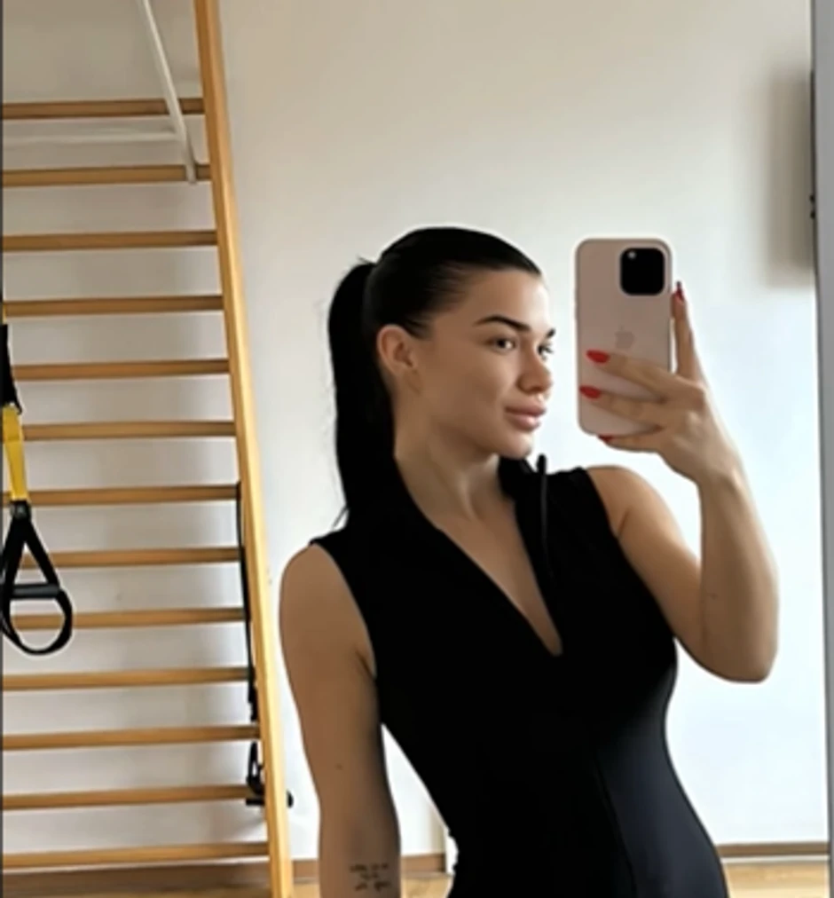 Ona je sada podelila fotografiju nakon treninga i pozirala u uskom crnom kombinezonu sa dubokim dekolteom koji je savršeno istakao njenu liniju.