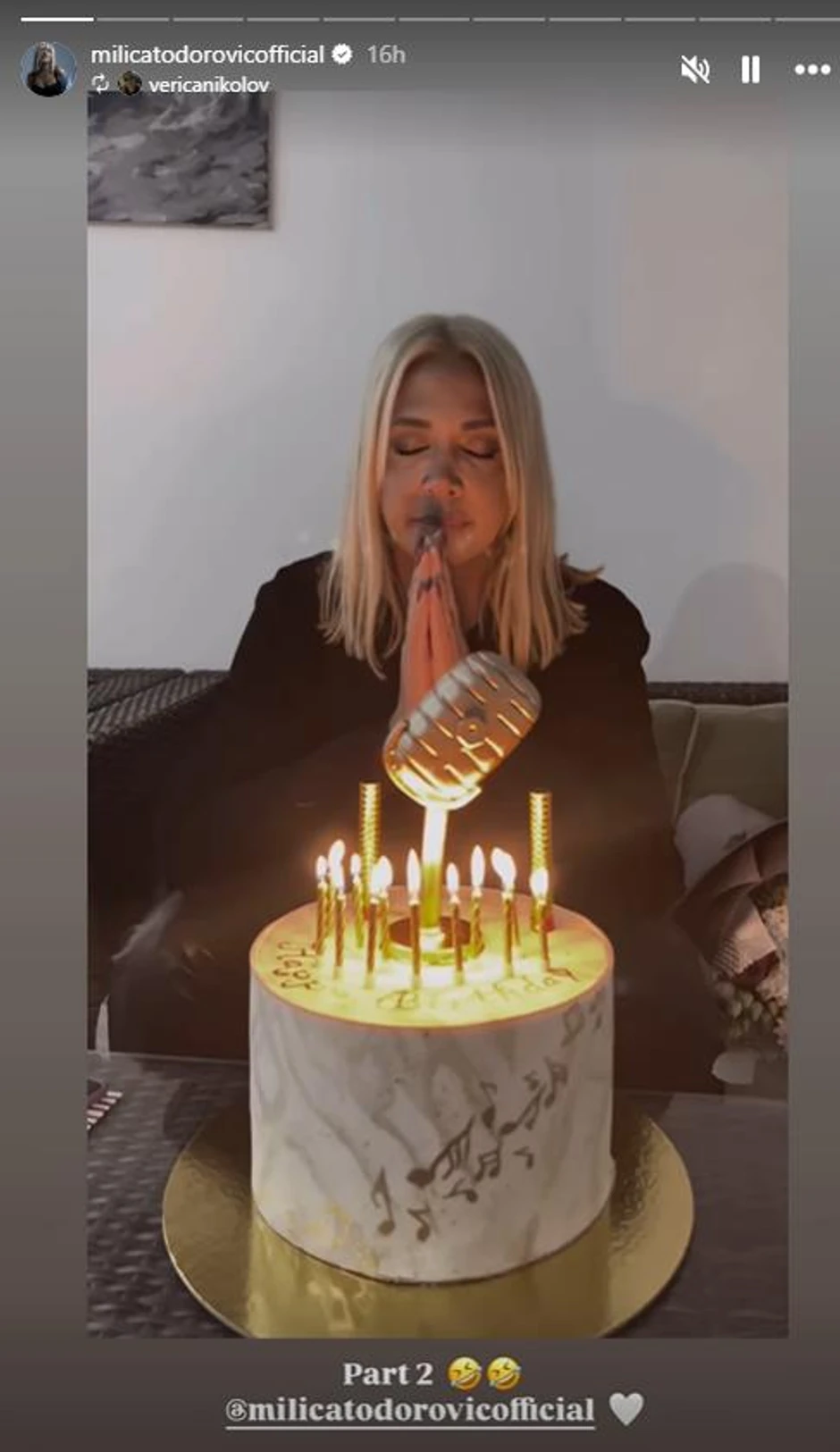 Tačno u ponoć, Milici je priređeno posebno iznenađenje - torta ukrašena muzičkim simbolima i prskalicama, koja je dodatno podigla atmosferu i učinila veče još svečanijim.