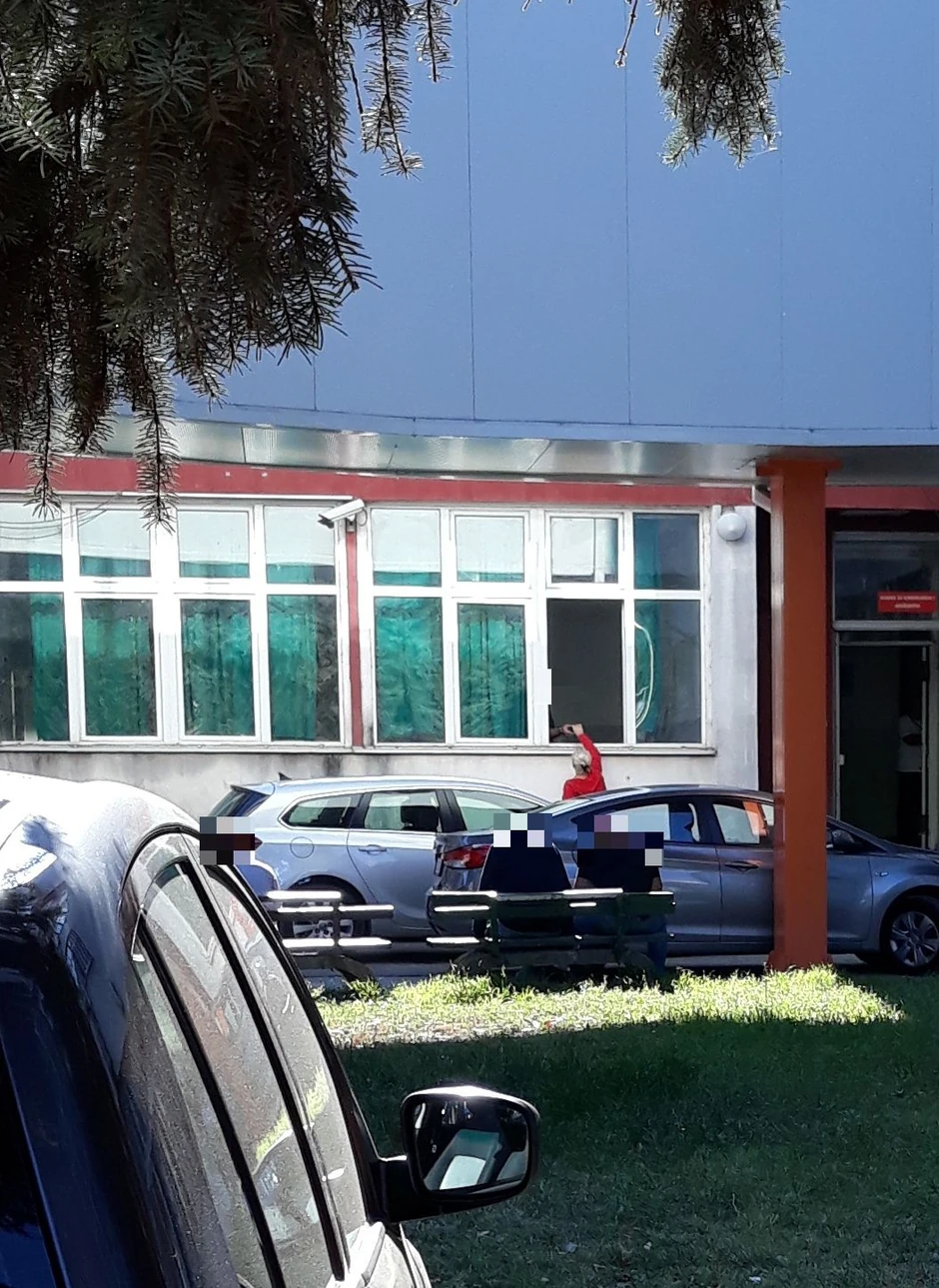 Marija je po dolasku bila u zgradi sa Miljanom na Ginekološko akušerskoj klinici, dok je Siniša sa još dvojicom muškaraca, po svemu sudeći iz iz produkcije, sedeo na klupi ispred Klinike.