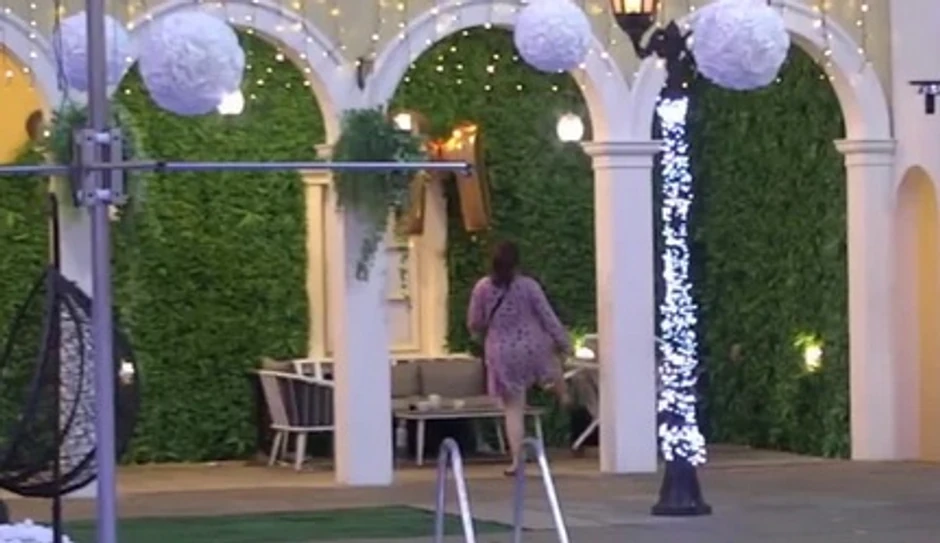 Dok su izlazili iz kuće, Miljana je šutirala zid, i oborila je fotelju u dvorištu.