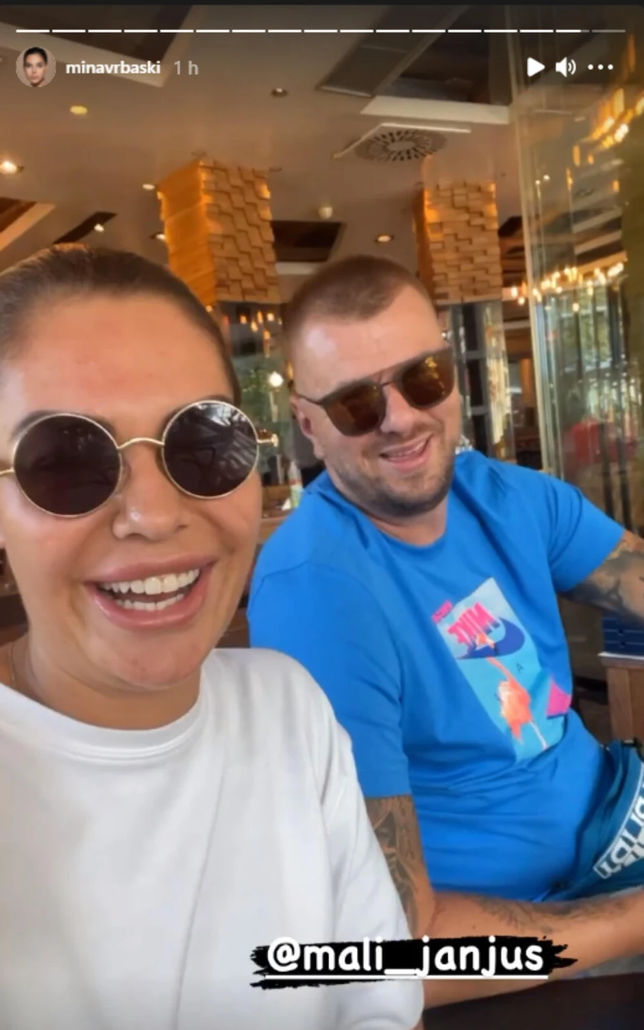 Naime, Mina je na svom Instagram profilu objavila video snimak iz jednog beogradskog kafića, a tom prilikom je pokazala da uživa sa Janjušem.