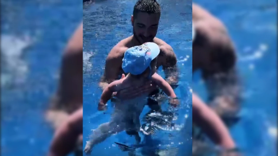 Šijan je lep i sunčan dan iskorisio kako bi sa najmlađim članom porodice Ražnatović uživao i brčako se u bazenu.