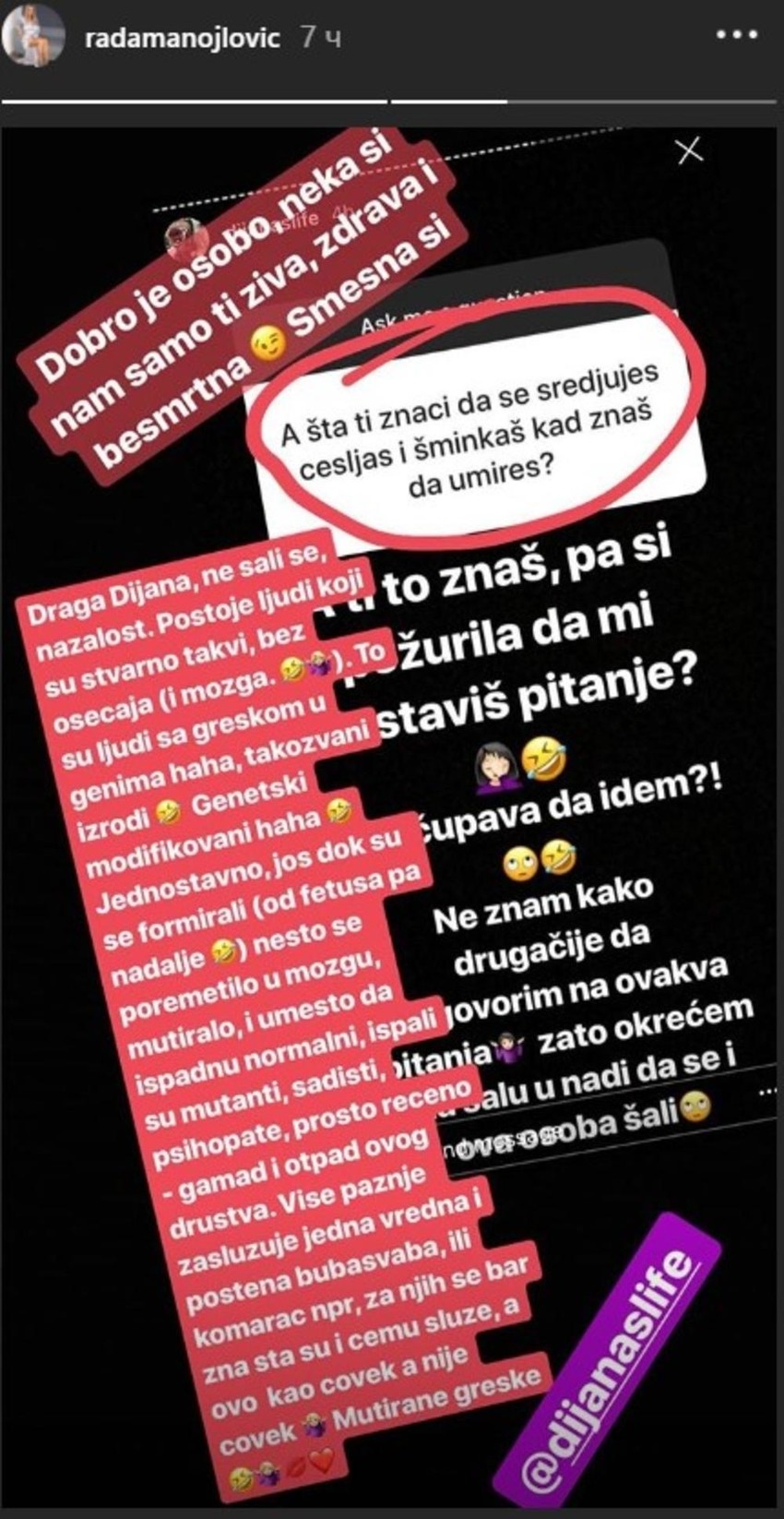 I pevačica Rada Manojlović reagovala je na ovakvu poruku: