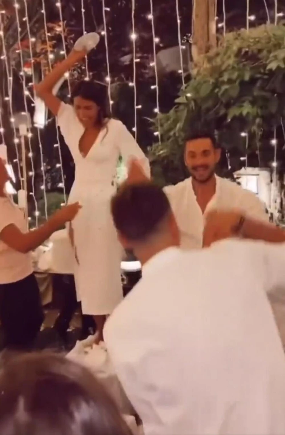 Mlada Mina Milutinović popela se na stočić i onako bosonoga igrala uz zvuke muzike, uvijala kukovima i rukama. Oko nje veselili su se mladoženja Nemanja Nedović, ali i ostale zvanice.