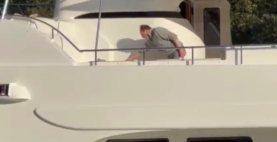 Dok se Melina sve vreme krila u kabini jahte, gde se u tajnosti pripremala za gala proslavu, mladoženja Džefri je uhvaćen u potpuno opuštenom izdanju. Odeven samo u džemper i farmerke je čistio po jahti i pažljivo slagao prekrivač na brodu.