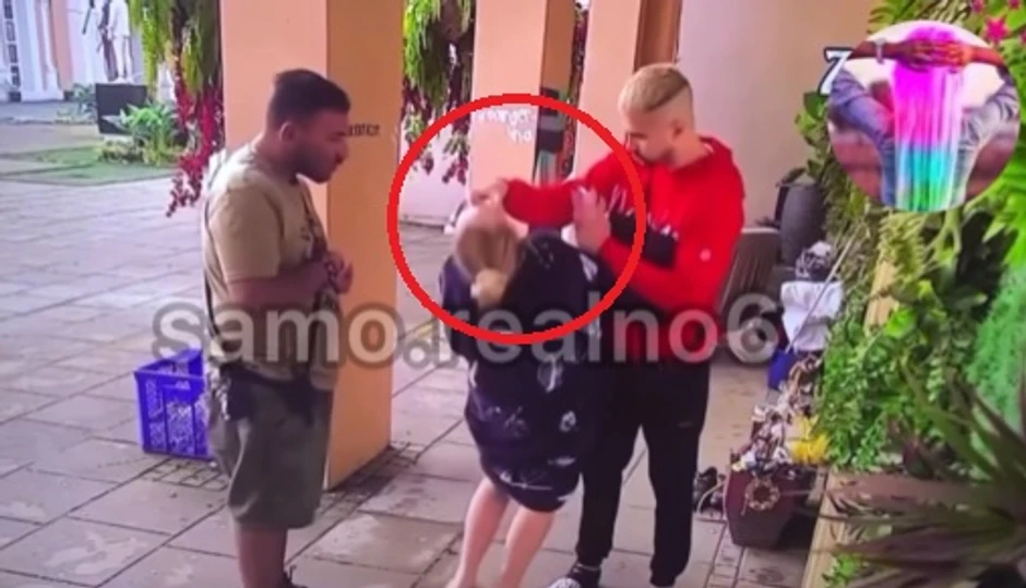 Na spornom snimku se jasno kako Bilal Valentinu hvata za lice, ali i kako je Peca šutira i vređa u dvorištu Bele kuće.