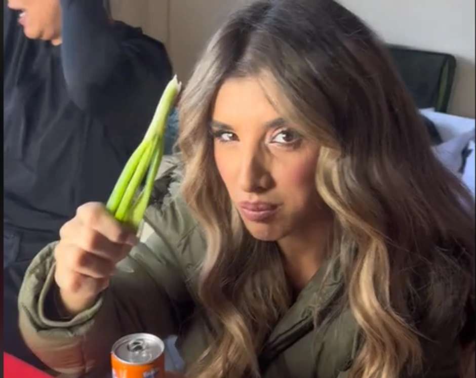 Pevačica je uživala u roštilju i mladom luku, a ljudi sa seta su se šalili sa njom i snimali je.