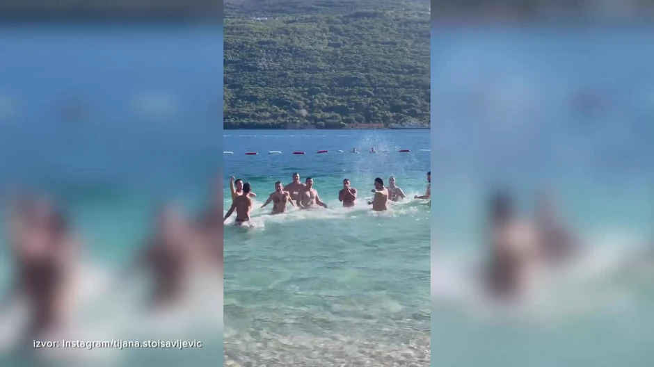 Danas se slavlje nastavilo na obali mora, a u jednom trenutku gosti su se poskidali i uskočili u more.