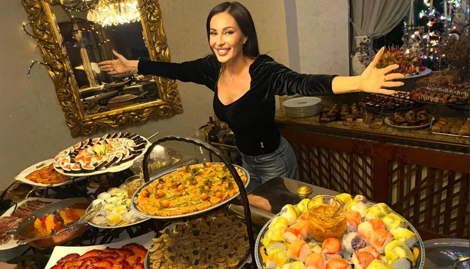 Proslave u Cecinoj vili na Dedinju uvek se nedeljama prepričavaju i dobar provod je zagarantovan, a sada je domaćica slave pozirala kraj bogate trpeze na kojoj nema šta nema.