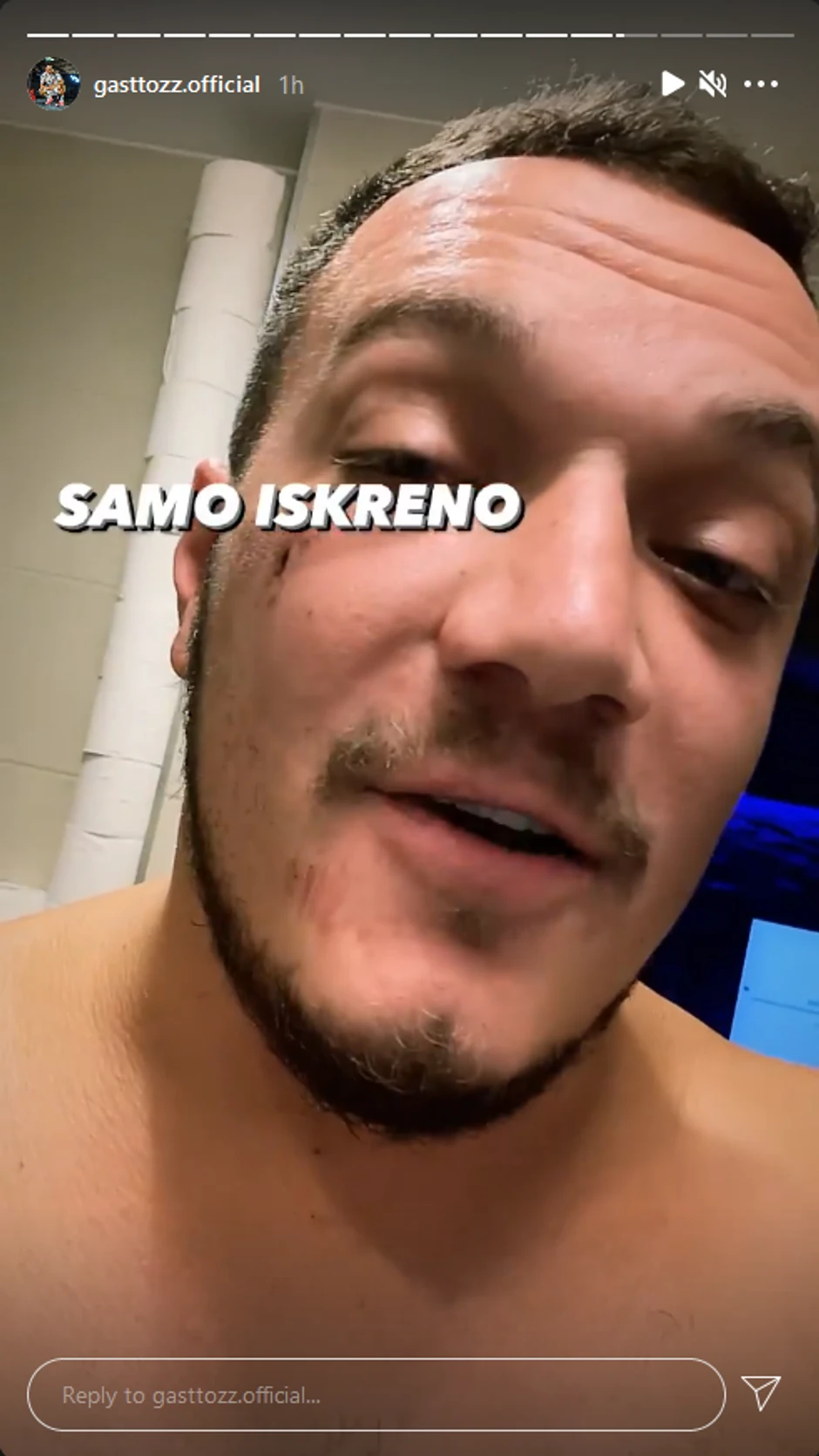 Rijaliti zvezda i muzičar Nenad Marinković Gastoz objavio je fotografije na osnovu kojih su mnogi pomislili da je učestvovao u okršaju, jer mu je desna strana lica zdrljana i modra.