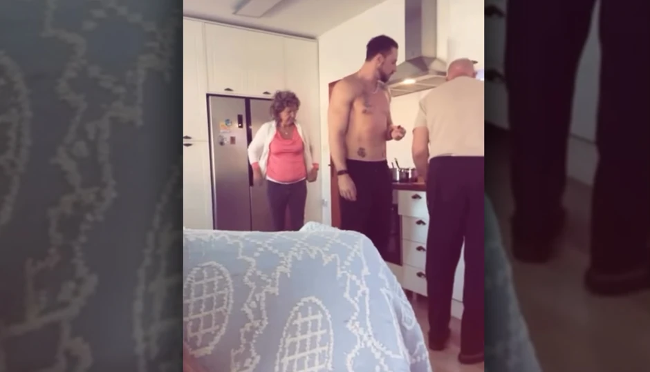 Alina je snimala njega dok je spremao ručak sa roditeljima, a glumac je u tom trenutku bio bez majice pa je pokazao svoje mišićavo telo.