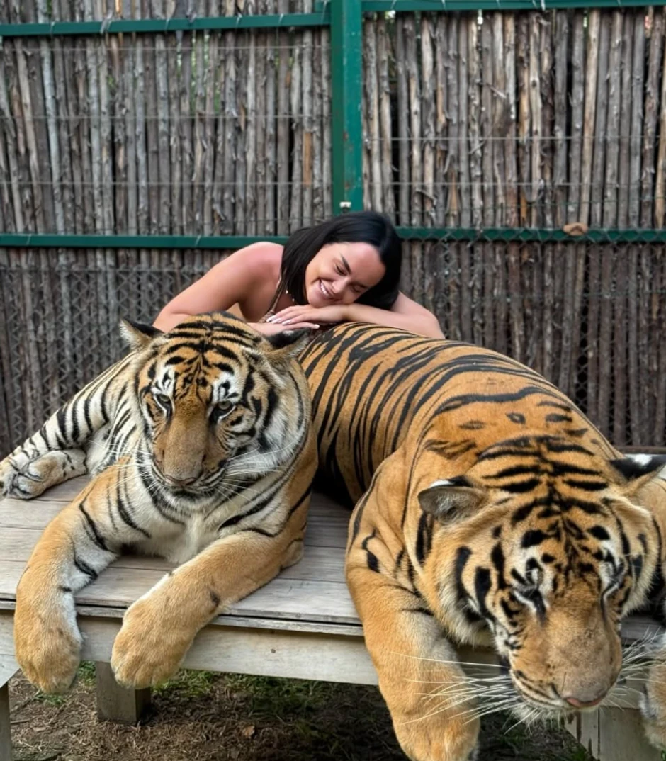 Pevačica Tijana Milentijević, poznatija kao "žena od sultana", je pozirala sa tigrovima u kavezu.