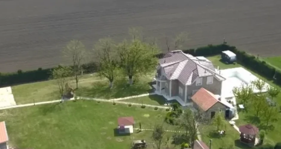 U dvorištu se nalazi veliki bazen sa ležaljkama i foteljama, vila poseduje dve velike dnevne sobe u kojima se nalaze unikatne garniture, veliki televizor, a zidovi su svetlih boja.