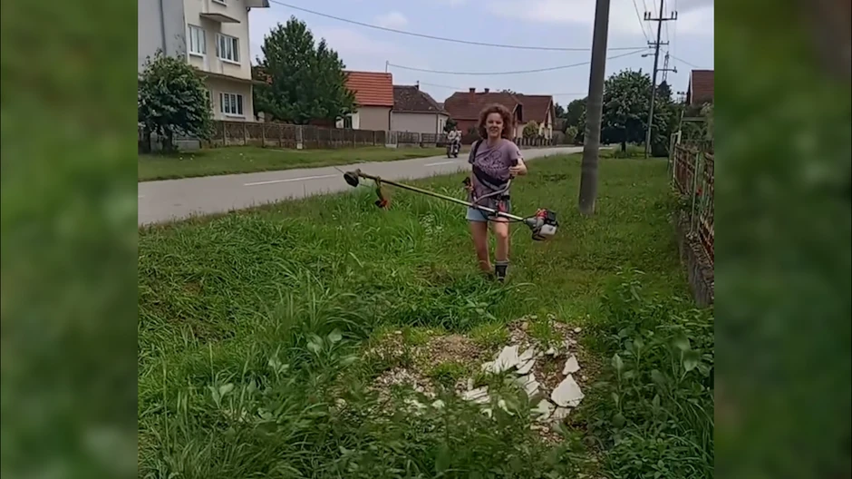 Naime, pevačica je odlučila da sama sredi dvorište kuće, a na Instagram nalogu je objavila snimak na kom se vidi kako trimerom kosi travu.
